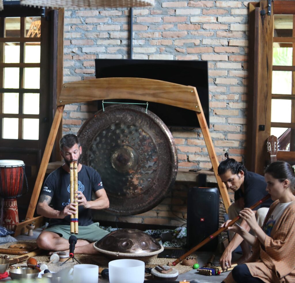 Juliano conduz a experiência tocando uma paleta de instrumentos vibracionais, com os quais improvisa sobre uma trilha sonora da sua composição. Incorporando sons de água, terra, fogo e ar criando texturas refinadas com instrumentos de sopros, cordas e percussões.